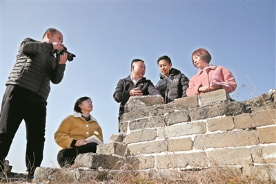 “讓每一塊城磚開(kāi)口,讓每一處遺址說(shuō)話?!惫疟笨阪?zhèn)中心小學(xué)校長(zhǎng)徐國(guó)文(左三)帶領(lǐng)教師把教研活動(dòng)搬到了長(zhǎng)城上,探討如何打破課程設(shè)置“壁壘”,在考察、尋訪、探究、實(shí)踐中培養(yǎng)學(xué)生堅(jiān)毅品格。樊世剛 攝