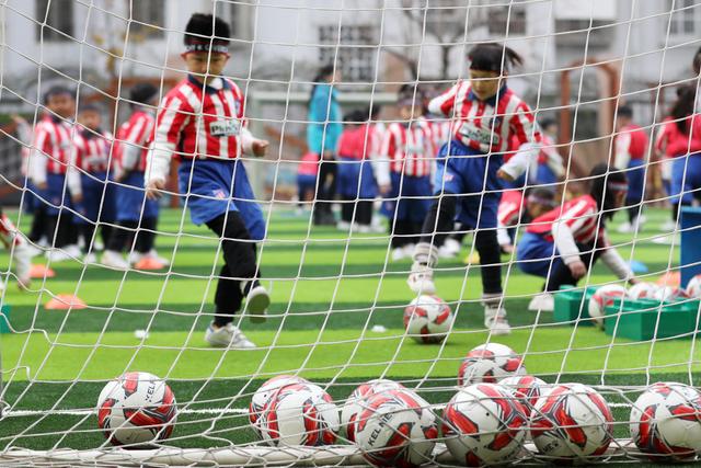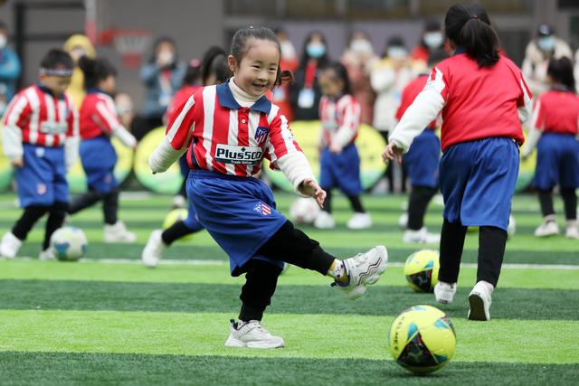 12月7日,淮北市第二實(shí)驗(yàn)幼兒園的小朋友在足球課上學(xué)習(xí)踢足球。安徽省淮北市第二實(shí)驗(yàn)幼兒園是一所“全國足球特色幼兒園”。該園把足球列入幼兒園體育課教學(xué)內(nèi)容,通過開設(shè)幼兒足球趣味練習(xí)、足球游戲等特色課程,向孩子們傳授足球基本知識和技巧,從小培養(yǎng)孩子們對足球的興趣,讓他們感受足球運(yùn)動的魅力,健康快樂成長。新華社發(fā)(萬善朝 攝)