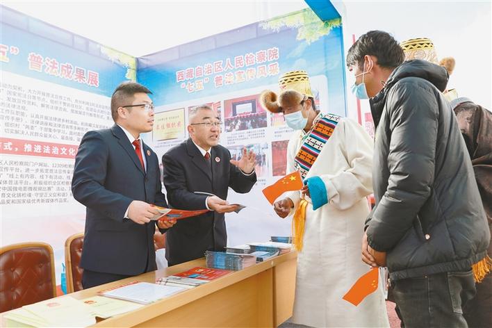 西藏人民檢察院工作人員為群眾解答法律問題。王杰學(xué) 王雪 攝