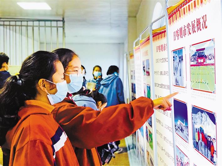宣講組一行通過圖片和文字資料,向內(nèi)地西藏班的學子們展示了西藏翻天覆地的變化及各項事業(yè)取得的成就。圖為內(nèi)地西藏班學生觀看圖片和文字展。