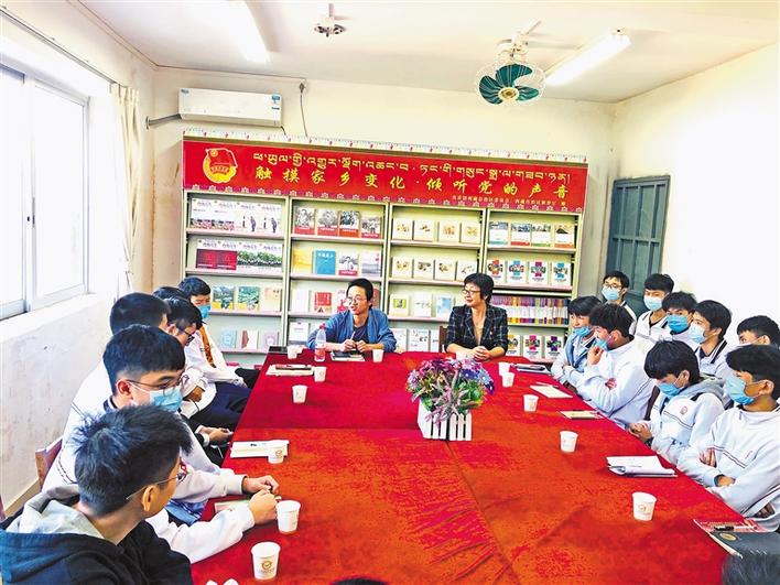 西藏青年報社副社長洛桑頓珠、內(nèi)地西藏班(校)管理中心工作人員廖羨等,同內(nèi)地西藏班的各族師生代表進行座談。