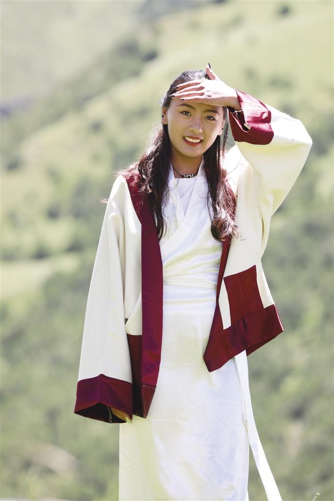 今年24歲的覺(jué)美,來(lái)自那曲比如縣,父親是當(dāng)?shù)胤俏镔|(zhì)文化遺產(chǎn)傳承人,長(zhǎng)期從事那曲服飾特色的傳承與研究。在這種家庭氛圍及文化的熏陶下,覺(jué)美從小就對(duì)那曲服飾很感興趣,如今的他也是娜秀比如傳統(tǒng)服飾的傳承人之一。
