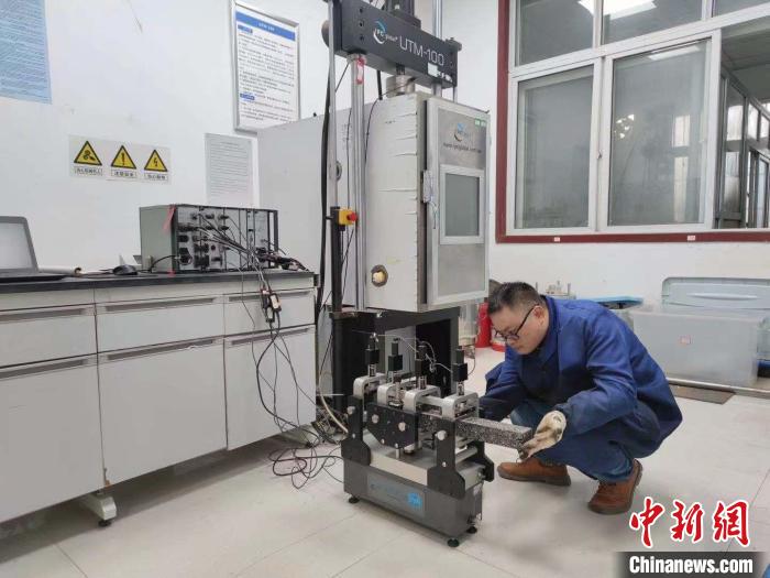黃恒偉與團隊為莫喀高鐵項目進行四點彎曲疲勞試驗?!∈茉L者供圖