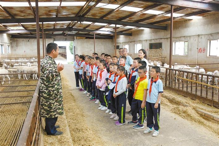 9月2日,肉羊養(yǎng)殖場的技術人員帶領渭州學校的學生們參觀羊舍并進行講解。新華社發(fā)