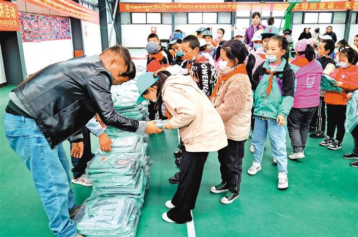 日前,一批由江蘇揚(yáng)州太陽雨愛心志愿者團(tuán)隊125名愛心人士捐贈的價值3萬多元的522個愛心書包,送到了西藏山南市錯那縣曲卓木鄉(xiāng)小學(xué)的學(xué)生手中?;顒由罨藘傻厝嗣竦挠颜x,鑄牢了中華民族共同體意識。