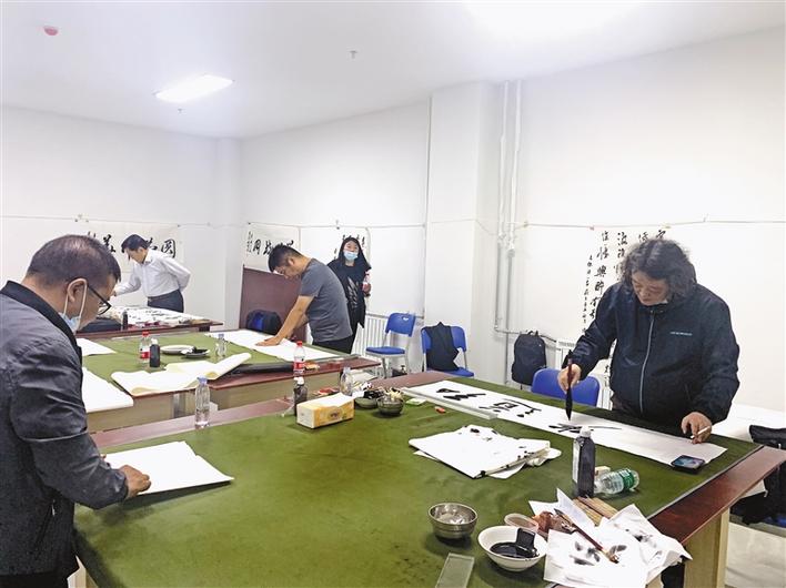 圖為北京和拉薩兩地書法家在拉薩師范高等??茖W(xué)校開展書法筆會(huì)交流。 記者 裴聰 攝