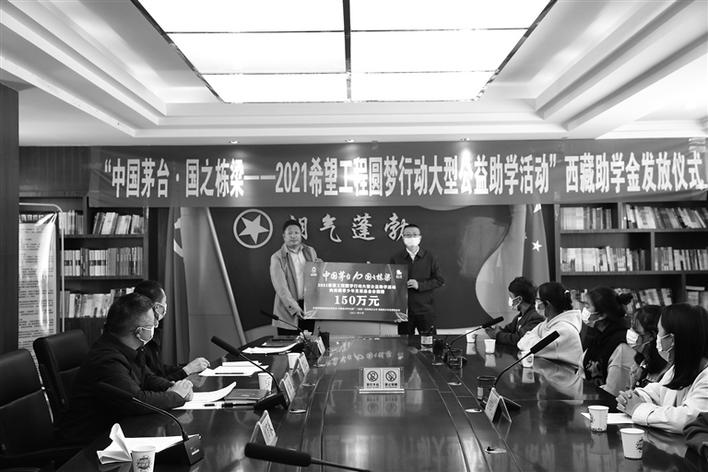 10月25日,共青團(tuán)西藏自治區(qū)委員會、西藏青少年發(fā)展基金會和貴州茅臺酒廠(集團(tuán))有限責(zé)任公司在拉薩舉行“中國茅臺·國之棟梁”2021希望工程圓夢行動大型公益助學(xué)活動西藏助學(xué)金發(fā)放儀式。