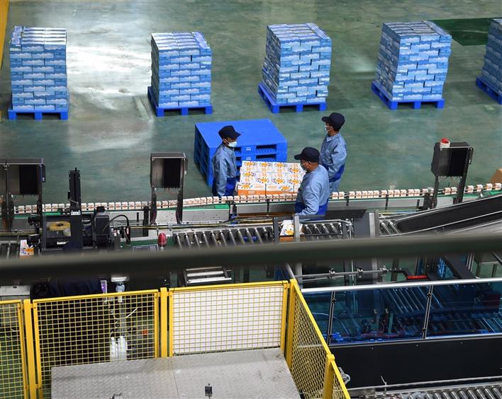 西藏奶產(chǎn)品企業(yè)員工在包裝學(xué)生飲用奶產(chǎn)品