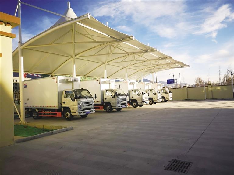 27日上午9時許,記者來到位于318國道南側的拉薩市城關區(qū)凈土中央廚房,看見道路兩邊停放著一排排送餐車輛?!澳壳埃覀児灿?0輛保溫加溫送餐車輛,而且每輛送餐車有兩把鑰匙,一把在工作人員手中,另一把在學校工作人員手中。當午餐送到學校后,兩把鑰匙同時使用才能將車輛打開?!崩_市城關區(qū)凈土中央廚房運營管理有限公司總經理葉濤介紹,這樣做,主要是為了保證運送途中的食品安全。