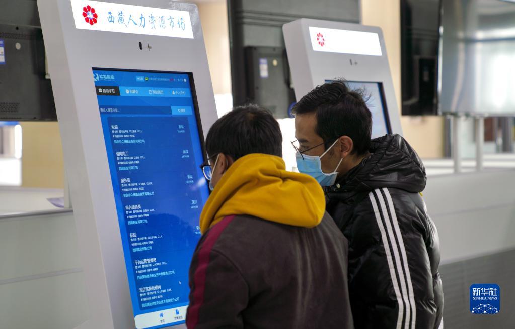 2月8日,求職者在西藏2023年“春風(fēng)行動(dòng)”暨就業(yè)援助月招聘活動(dòng)現(xiàn)場尋找崗位。新華社發(fā)(旦增努布攝)