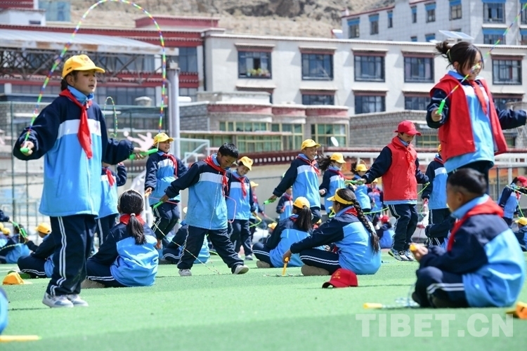 圖為活動現(xiàn)場學(xué)生在學(xué)跳繩 攝影:次旦拉姆
