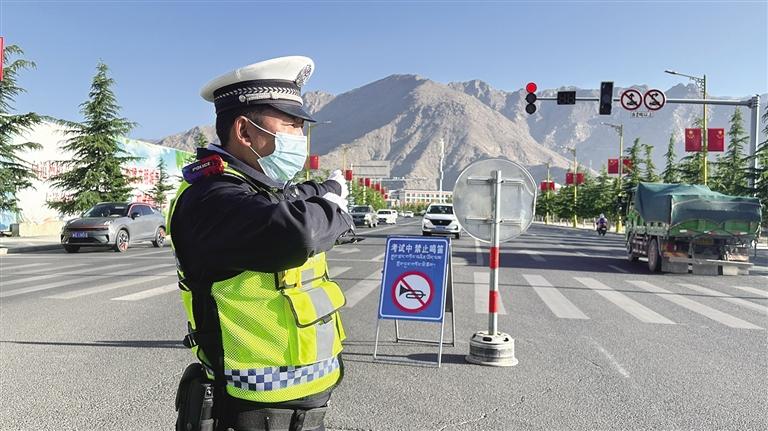 6月7日,記者駕車前往拉薩市第二中等職業(yè)技術(shù)學(xué)??键c(diǎn),一路暢通無(wú)阻,拉薩交警早早地就來(lái)到各考點(diǎn)執(zhí)勤,疏導(dǎo)交通。在考點(diǎn)周圍,路段上“禁鳴”“減速慢行”等交通標(biāo)志牌已經(jīng)設(shè)置完畢,社會(huì)車輛在交警的指揮下快速通行。家長(zhǎng)平措卓嘎告訴記者:“孩子今天是學(xué)校統(tǒng)一送到考點(diǎn)的,我們家長(zhǎng)一路過(guò)來(lái)看到每個(gè)考點(diǎn)周圍都有交警執(zhí)勤,周邊交通也很暢通,非常感謝交警同志的辛勤工作。”