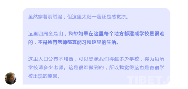 學(xué)生們?cè)趯W(xué)習(xí)漢語(yǔ)、英語(yǔ)等不同科目的同時(shí),學(xué)校對(duì)藏族傳統(tǒng)文化的存續(xù)依然不遺余力,給了孩子們拓展視野的鑰匙,讓他們有機(jī)會(huì)探索更寬廣的世界,這些不就是教育的意義嗎?何來(lái)“同化”?