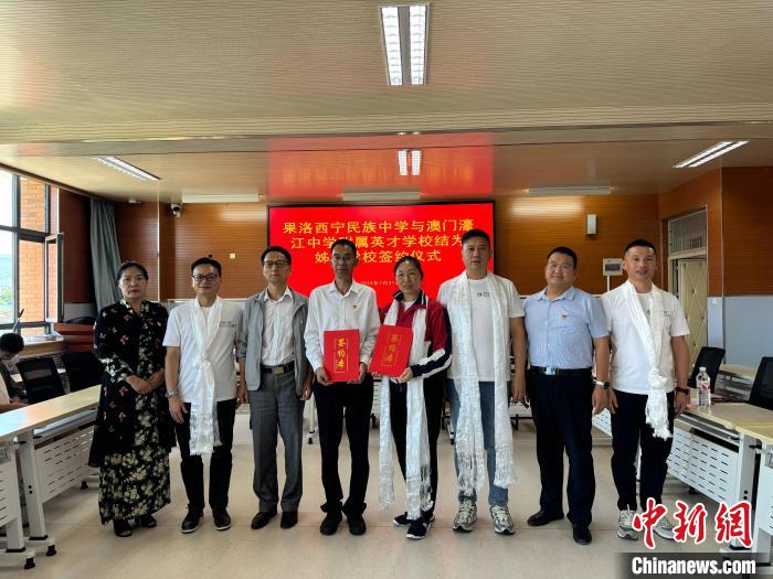 當(dāng)日,青海果洛西寧民族中學(xué)和澳門濠江中學(xué)附屬英才學(xué)校結(jié)為姊妹學(xué)校簽約儀式在果洛西寧民族中學(xué)舉行。
