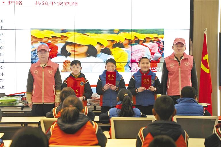 圖為“聘請”學(xué)生代表擔(dān)任“愛路護(hù)路小衛(wèi)士”。記者 劉斯宇 攝