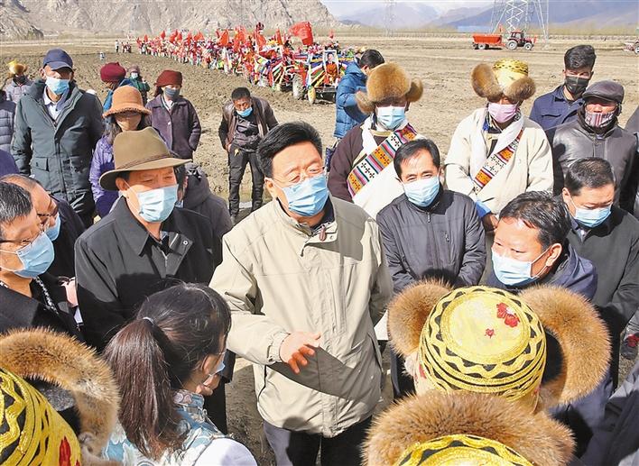 一年之計在于春。16日上午,西藏自治區(qū)黨委書記吳英杰和區(qū)黨委副書記、自治區(qū)人大常委會主任洛桑江村專程來到拉薩市曲水縣田間地頭、農(nóng)牧系統(tǒng)單位,與當(dāng)?shù)馗刹咳罕娬勌厣a(chǎn)業(yè)經(jīng)、算增收致富賬,實地調(diào)研春耕春播工作情況。吳英杰強調(diào),要戰(zhàn)“疫”不誤農(nóng),始終堅持以人民為中心的發(fā)展思想,找準(zhǔn)農(nóng)牧民增收致富的“切入點”,深入推進農(nóng)牧業(yè)供給側(cè)結(jié)構(gòu)性改革,確保農(nóng)牧民群眾不離鄉(xiāng)不離土就能依靠產(chǎn)業(yè)發(fā)展增收致富。