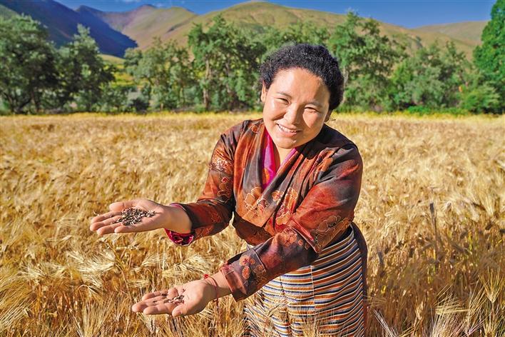 圖為尼瑪曲宗展示2020年村里試種的黑青稞。記者 王菲 通訊員 曲杰 攝