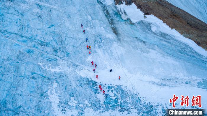 圖為第三極攀登者2020中國企業(yè)家冰川挑戰(zhàn)賽參賽者攀登洛堆峰。 當(dāng)雄縣委宣傳部供圖