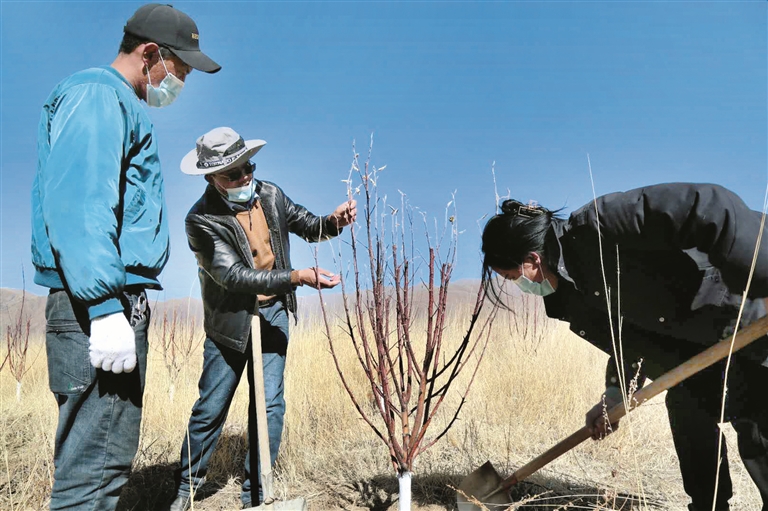 “果樹要修剪,每年開春都要剪掉干枯枝、病枝、細(xì)弱枝、重疊枝、去年掛果枝等,保留健康新生枝,這樣秋季果樹便會(huì)碩果累累……”工卡村第一書記李學(xué)龍一邊拿著剪刀修剪果樹,一邊給村民們傳授果樹修剪、覆土保墑、澆水施肥、防止鼠害等經(jīng)驗(yàn)。李學(xué)龍是一名退伍兵人,森林防火滅火、野生動(dòng)植物保護(hù)、植樹造林綠化都是他的“老本行”,在工卡鎮(zhèn)擔(dān)任第一書記后,他還跟著拉薩市林業(yè)綠化局專業(yè)人員學(xué)習(xí)了果樹栽培、修剪等技術(shù)。