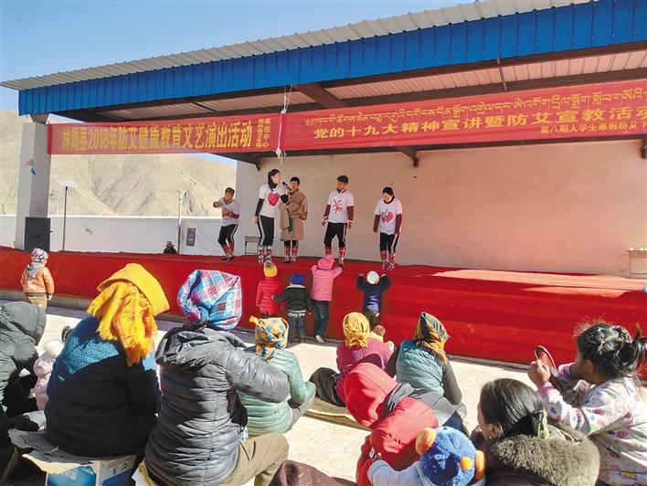 西熱組織大學(xué)生在基層開展防治艾滋病公益宣傳和文藝演出活動。