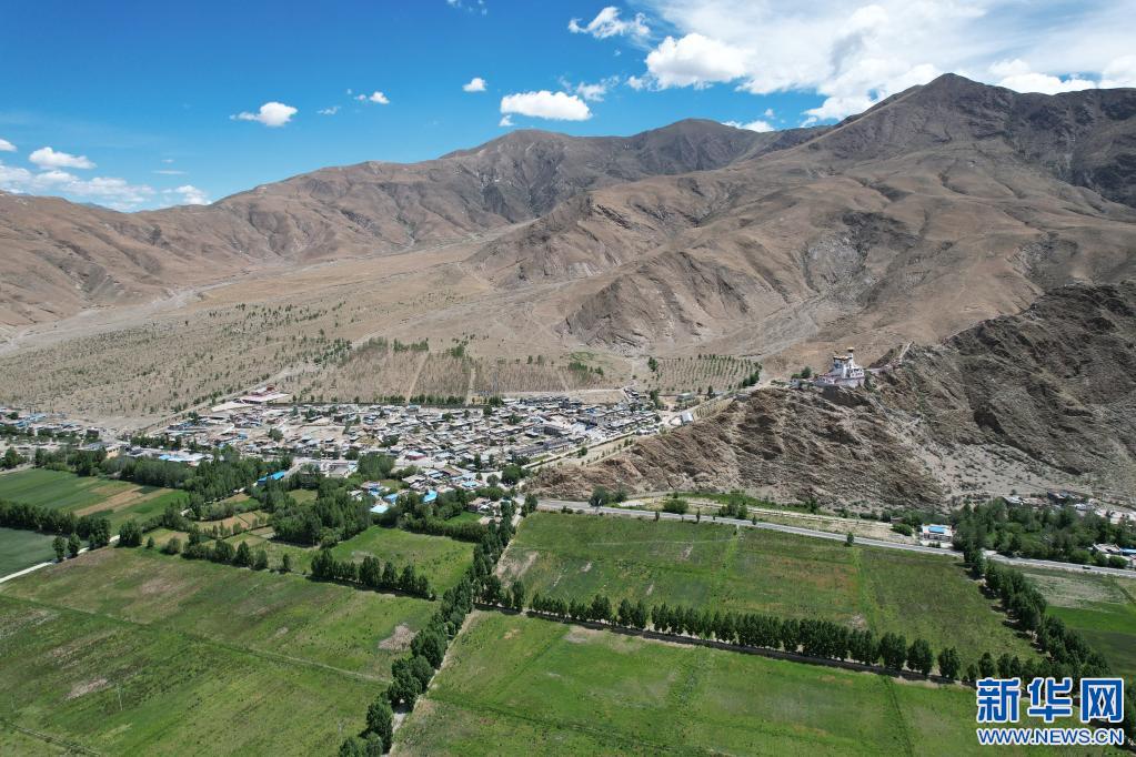 遠(yuǎn)眺雍布拉康和門(mén)中崗社區(qū)(無(wú)人機(jī)照片,6月24日攝)。新華社記者 司源 攝
