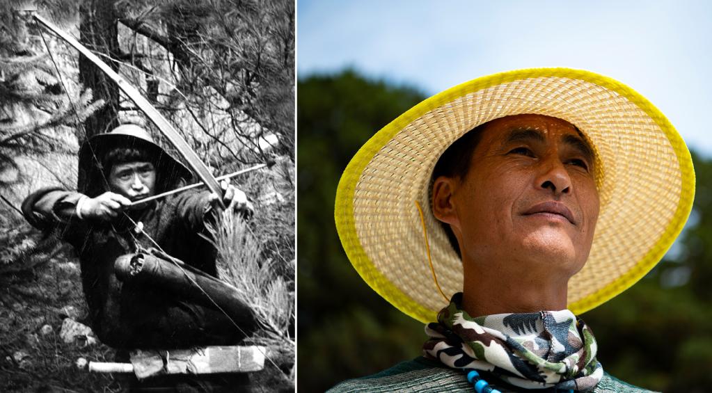 左圖是20世紀(jì)50年代瓊林村非常有名的獵手達(dá)前(資料照,新華社發(fā));右圖是瓊林村珞巴族達(dá)吉,結(jié)束打獵生涯,成為護(hù)林員(2021年6月19日攝)。新華社記者 晉美多吉 攝