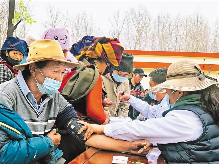 圖為西藏藏醫(yī)藥大學附屬醫(yī)院的醫(yī)護人員為林周縣村民義診。記者 央金 攝
