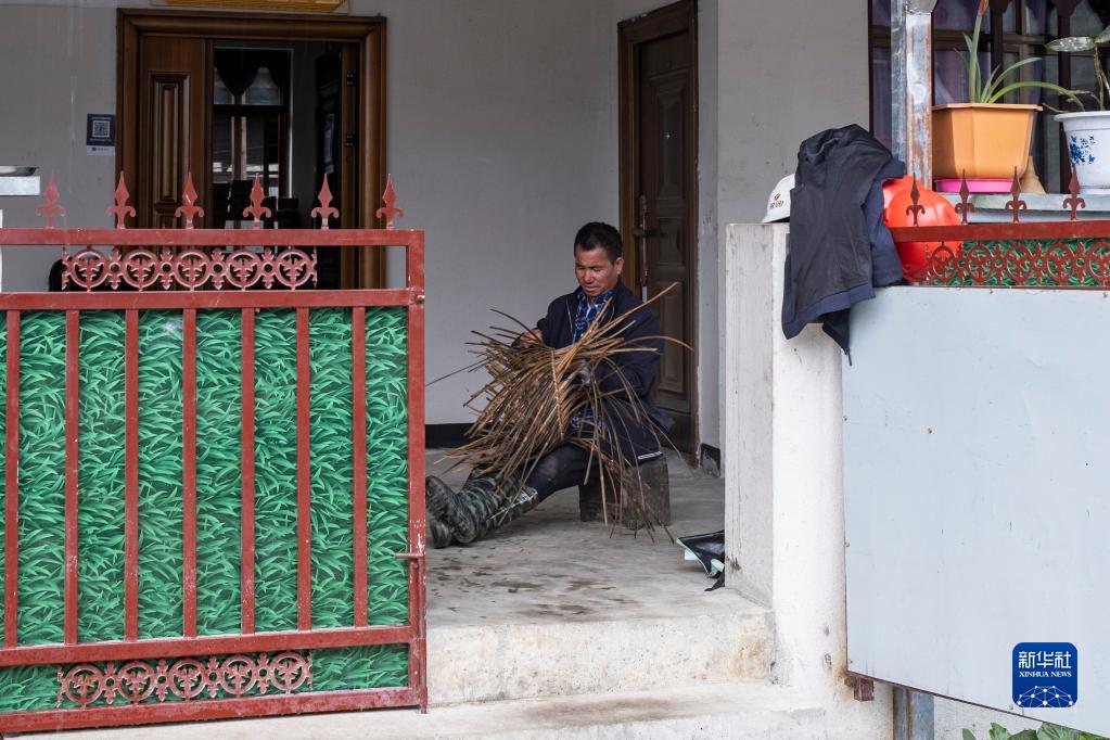 巴登村村民在家編織竹筐(4月15日攝)。新華社記者 晉美多吉 攝