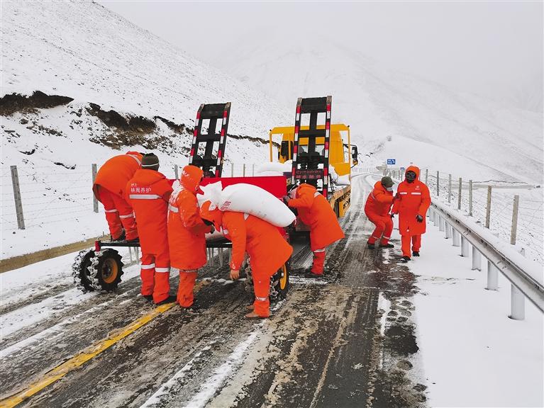 圖為拉薩市交通運(yùn)輸部門組織農(nóng)村公路護(hù)路員開展除雪作業(yè)。