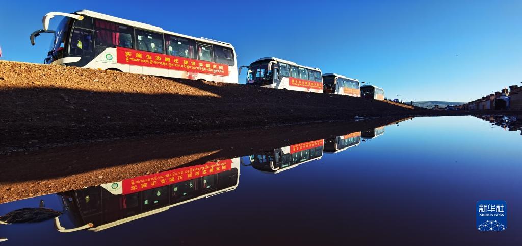 搬遷群眾搭乘大巴,準(zhǔn)備前往森布日安置點(diǎn)(7月19日攝)。新華社記者 孫非 攝