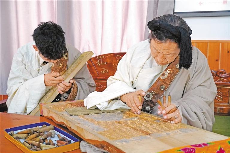 2019年,華電西藏公司駐昌都市江達(dá)縣外沖村工作隊(duì)幫助村里成立了木松民族手工藝公司。工作隊(duì)申請(qǐng)政府投資535萬元,華電集團(tuán)捐贈(zèng)140萬元建設(shè)木刻車間和配套設(shè)施,聘請(qǐng)波羅古澤刻板技藝傳承人負(fù)責(zé)技藝培訓(xùn),公司現(xiàn)在有120余名手藝人和學(xué)徒,累計(jì)為群眾增收近900萬元。