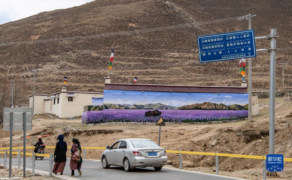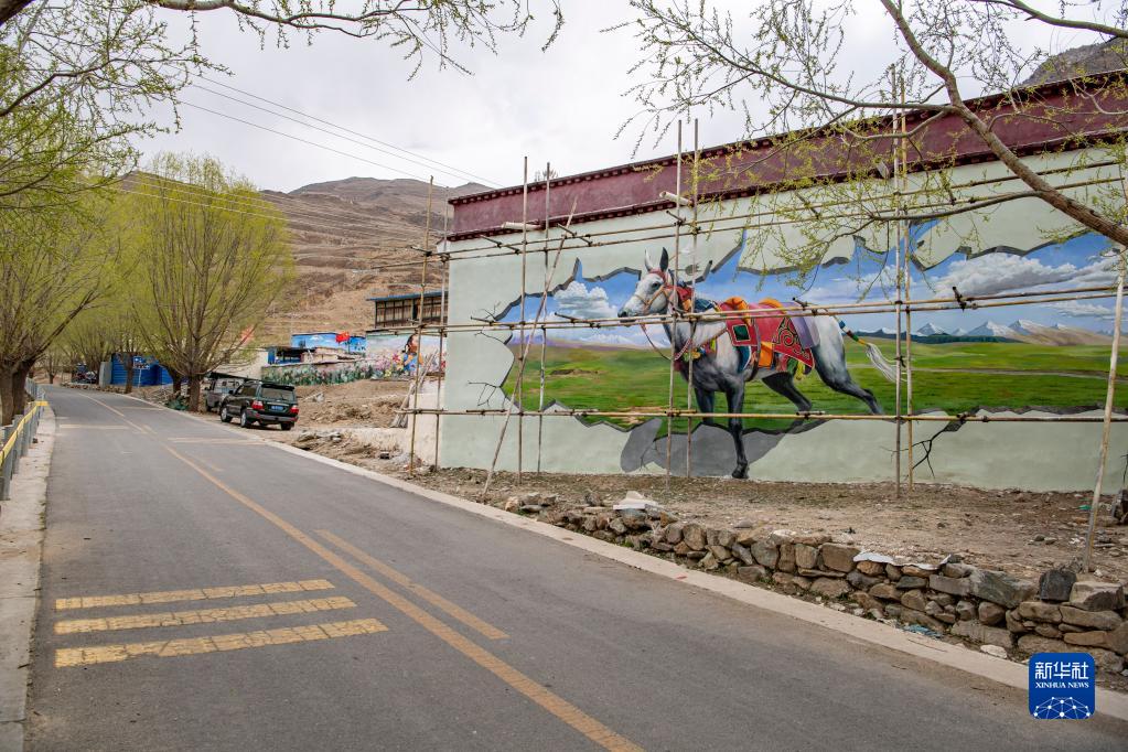 這是4月10日在拉薩市達(dá)孜區(qū)章多鄉(xiāng)恰村拍攝的墻畫。新華社記者 晉美多吉 攝