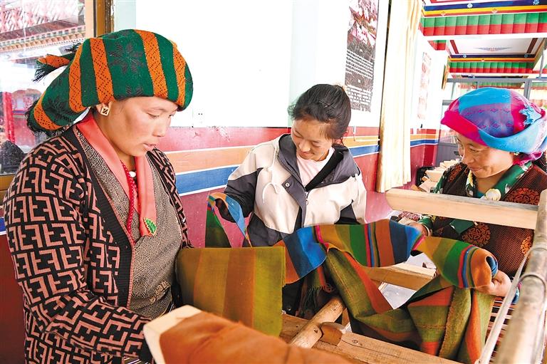 圖為日喀則市仁布縣康雄鄉(xiāng)亞德細(xì)褐羊毛織品農(nóng)民專(zhuān)業(yè)合作社的編制能手在傳授編制技藝。記者 李洲 攝