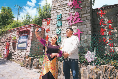 村民巴珍家的藏式小樓,院內(nèi)鮮花簇簇、室內(nèi)溫暖如春,二樓的3個(gè)房間租給旅游企業(yè)用作客房?!耙荒攴孔馐杖胗?萬多元,我在旅游公司打工,月工資4000多元,一年收入七八萬元,關(guān)鍵是工作生活都在自己村里,簡直是太方便了?!卑驼浜軡M意現(xiàn)在的生活。旦增達(dá)杰介紹,光房屋租金一項(xiàng),村民戶均年增收3萬多元。