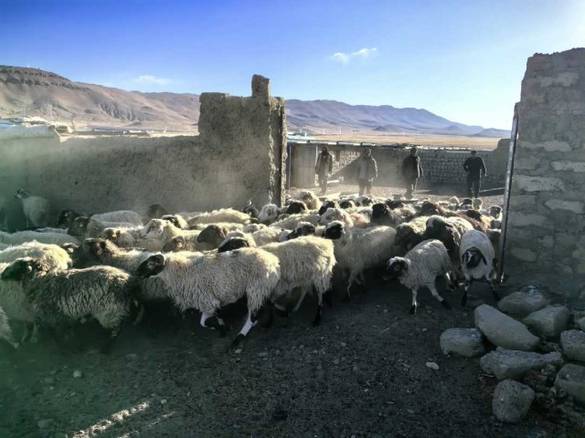 太陽翻過雪山,灑滿西藏日喀則市崗巴縣崗巴鎮(zhèn)雪村的大地時,穿著羊皮袍子、皮膚黝黑的扎西多杰準(zhǔn)時打開了圈門。隨著此起彼伏的“咩咩咩”聲,羊群就像開閘的洪水般傾瀉而出,踏出滾滾塵煙。