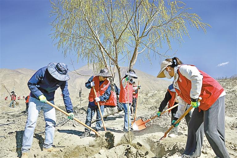 雅魯藏布江兩岸人義務(wù)植樹活動