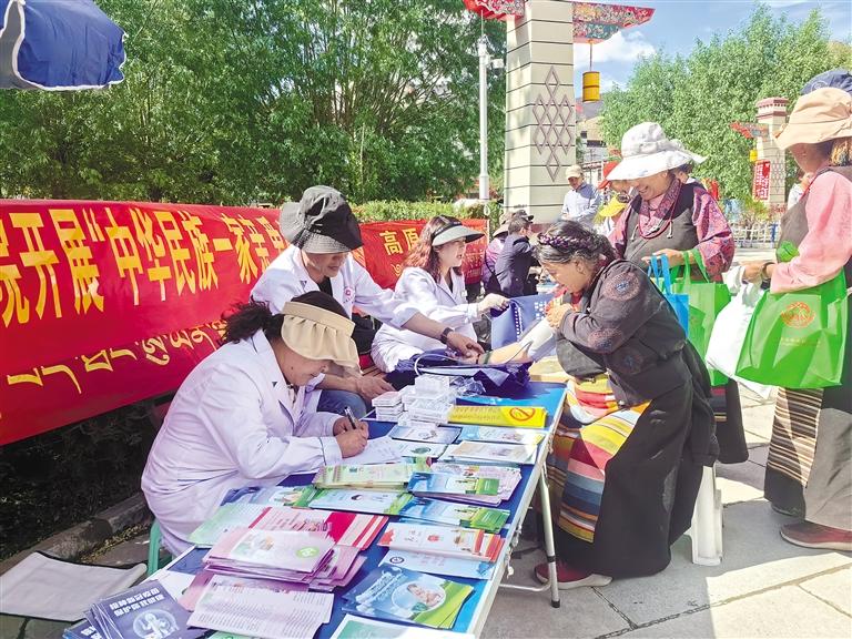 圖為仁布縣衛(wèi)健委開展以“中華民族一家親·愛心義診送萬家”為主題的免費義診活動。