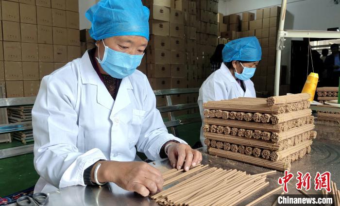 “我們農(nóng)閑時(shí)就會來這里制作藏香?!睅孜宦耦^工作的婦女不善言談,但她們數(shù)線香、捆藏香流程十分嫻熟,她們足不出村實(shí)現(xiàn)就業(yè)增收?! ?/p>