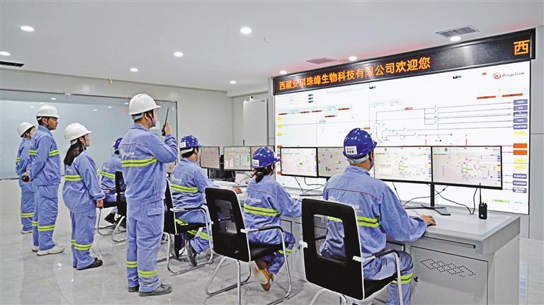 西藏安琪珠峰生物科技有限公司中控室內(nèi),工作人員在下達設備調(diào)試操作指令。 圖/文 記者 武沛濤 通訊員 陳映午