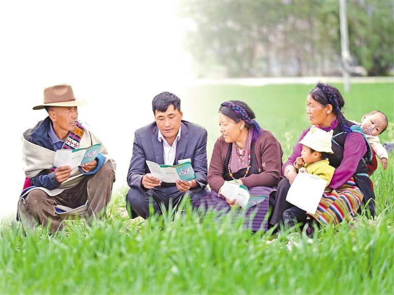 農(nóng)行西藏分行客戶經(jīng)理走進(jìn)田間地頭宣講金融知識(shí)。