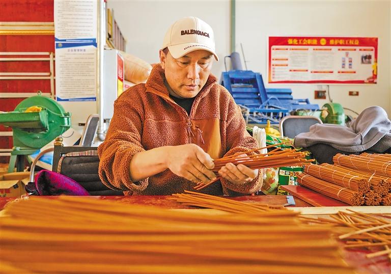 圖為察雅縣香堆鎮(zhèn)明亮民族手工藝品合作社的手工藝人在包裝藏香。記者 次仁平措 攝