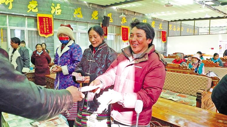 圖為噶爾縣獅泉河鎮(zhèn)加木村合作社分紅現(xiàn)場。 圖/文 記者 永青 達珍 洛桑旦增