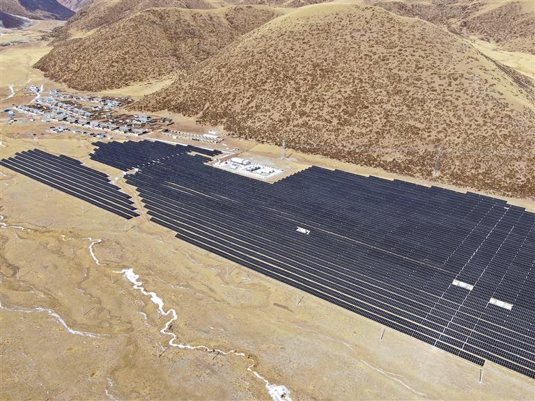 圖為位于工布江達(dá)縣加興鄉(xiāng)松多村的中廣核光儲(chǔ)電站光伏板陣列區(qū)。記者 劉楓 攝
