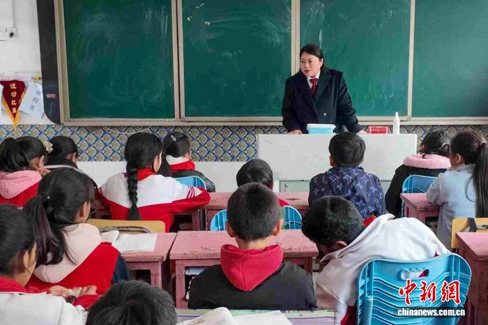 圖為2025年4月,全國政協(xié)委員、西藏墨脫縣人民法院綜合審判庭庭長白瑪玉珍在墨脫縣格當鄉(xiāng)小學為孩子們上法治課。(受訪者供圖)