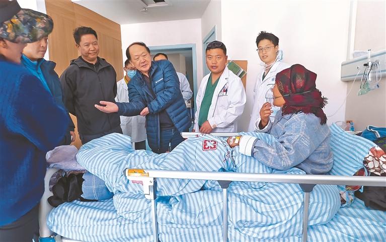 圖為南京市第一醫(yī)院關(guān)節(jié)外科專家團(tuán)隊(duì)了解患者術(shù)后康復(fù)情況。記者 格桑倫珠 攝