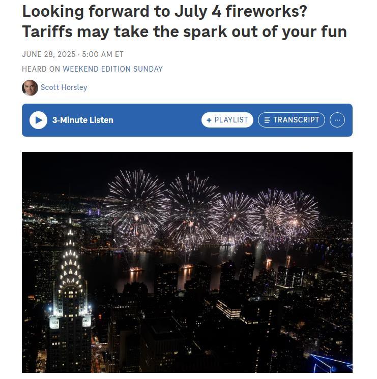 全球媒體聚焦丨美媒:關(guān)稅政策影響煙花進(jìn)口 美國(guó)獨(dú)立日慶典或受影響