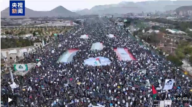 總臺報(bào)道員 哈桑·巴姆什穆斯:與許多國家舉行的集會一樣,在也門首都薩那南部的七十廣場, 當(dāng)?shù)孛癖娨才e行了大規(guī)模游行活動。當(dāng)前,隨著美以持續(xù)對伊朗發(fā)動軍事打擊,外界對戰(zhàn)爭外溢的擔(dān)憂正在加劇。