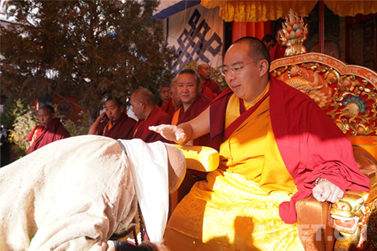 中國西藏網(wǎng)訊 11月13日至14日,全國政協(xié)常委、中國佛教協(xié)會副會長、中國佛協(xié)西藏分會會長班禪額爾德尼?確吉杰布在西藏日喀則市扎什倫布寺多加大院為信教群眾摸頂賜福,這是近年來規(guī)模最大的一次班禪摸頂賜?;顒印D為班禪摸頂賜福 攝影:王淑(中國西藏網(wǎng) 記者/王淑 賈華加)