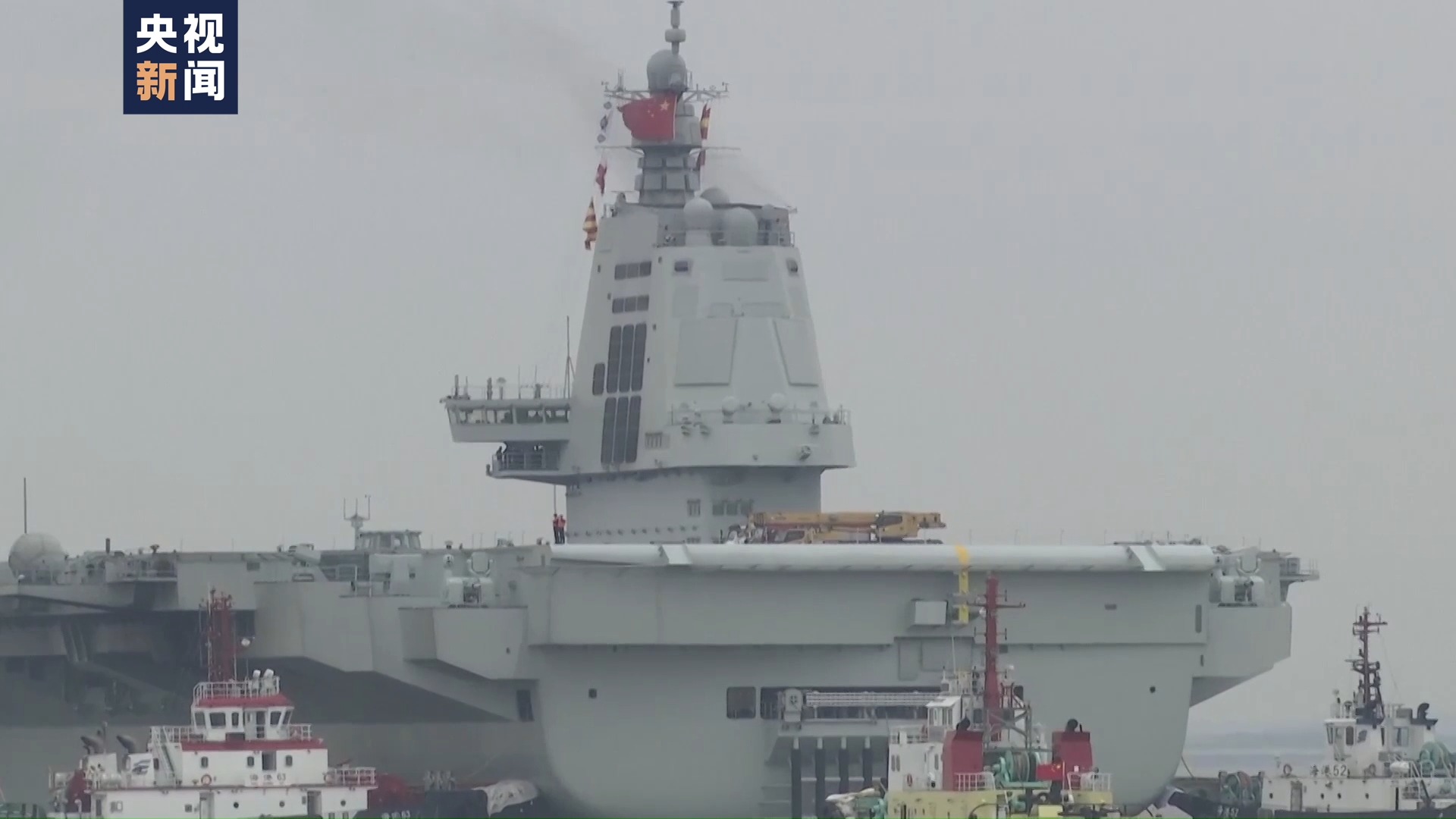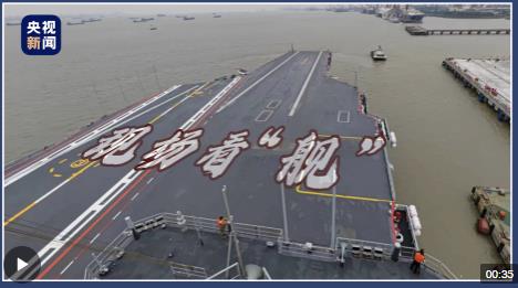 我國(guó)第三艘航空母艦福建艦在多艘拖船的牽引下,正在緩緩地駛離上海江南造船廠的碼頭,赴相關(guān)海域開展首次航行試驗(yàn)。