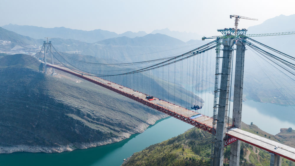 貴州交建集團(tuán)投資建設(shè)的納晴高速牂牁江大橋順利實(shí)現(xiàn)合龍,為納(雍)晴(隆)高速全線建成通車打下堅(jiān)實(shí)基礎(chǔ)(4月28日攝,無人機(jī)照片)。新華社記者 陶亮 攝
